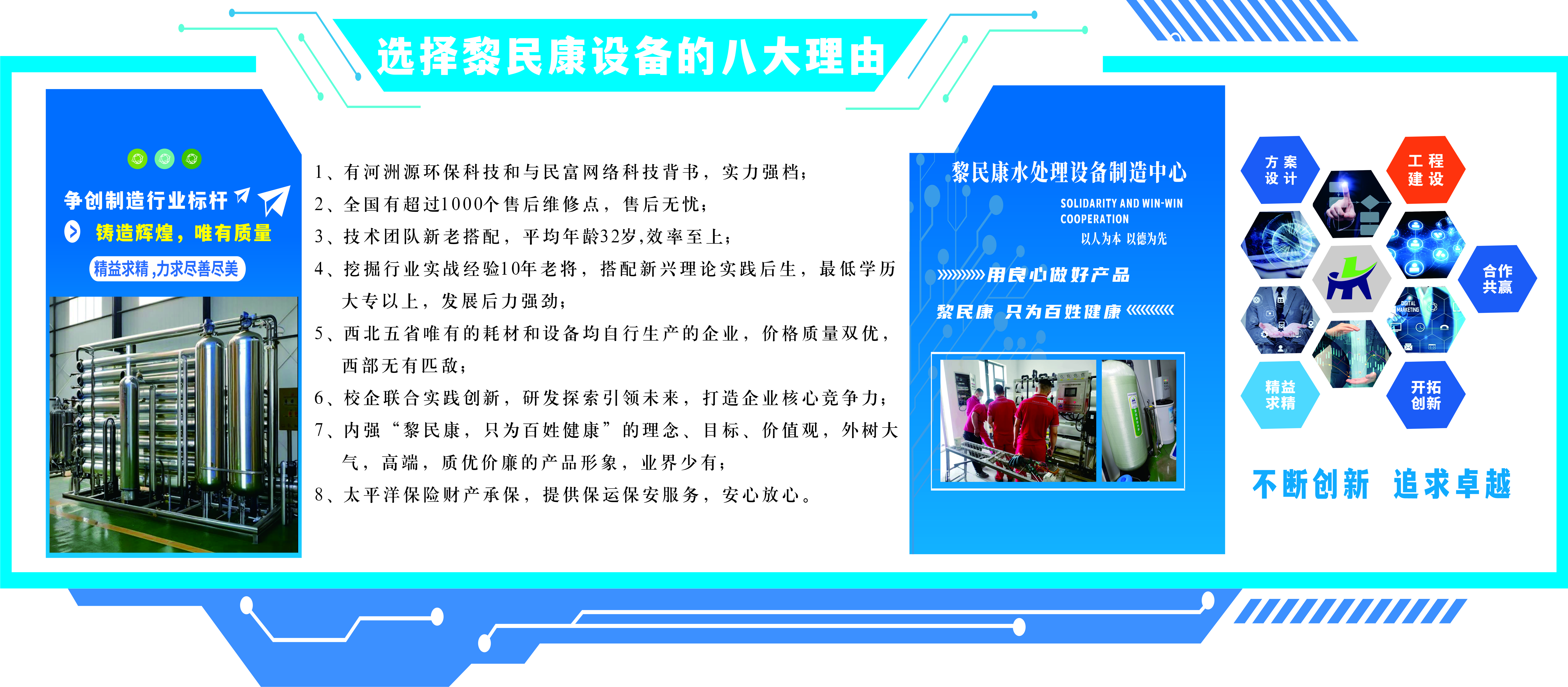 黎民康水處理設(shè)備公司,自成立之日起,邊樹立起:內(nèi)強(qiáng)“黎民康,只為百姓健康”的理念、目標(biāo)、價(jià)值觀;外樹大氣,高端,質(zhì)優(yōu)價(jià)廉的產(chǎn)品形象,業(yè)界少有; ...